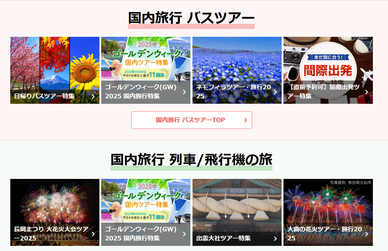 充実したラインアップからあなたの希望に合わせた旅が見つかります。