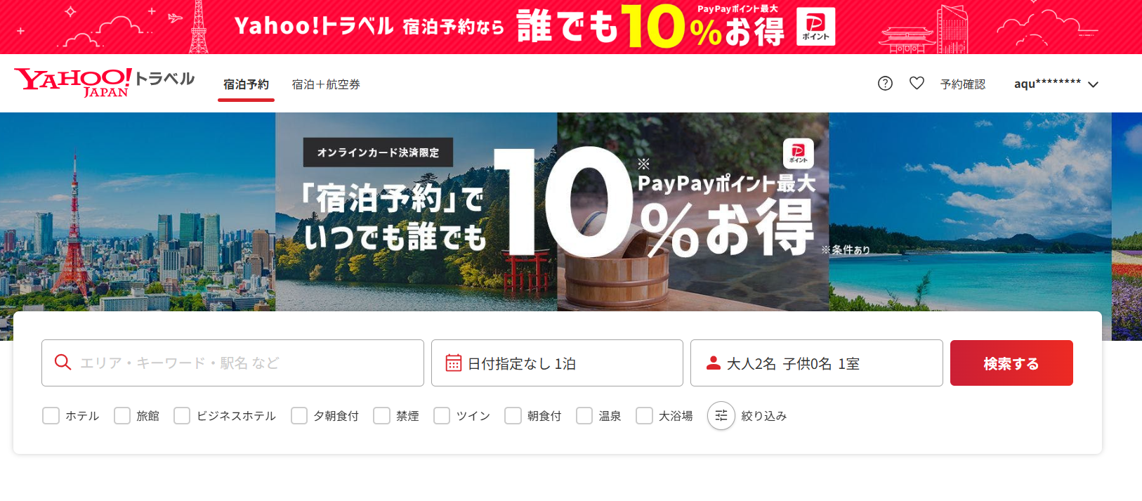 ヤフートラベルは、LINEヤフー株式会社が運営する総合旅行予約サイトです。
