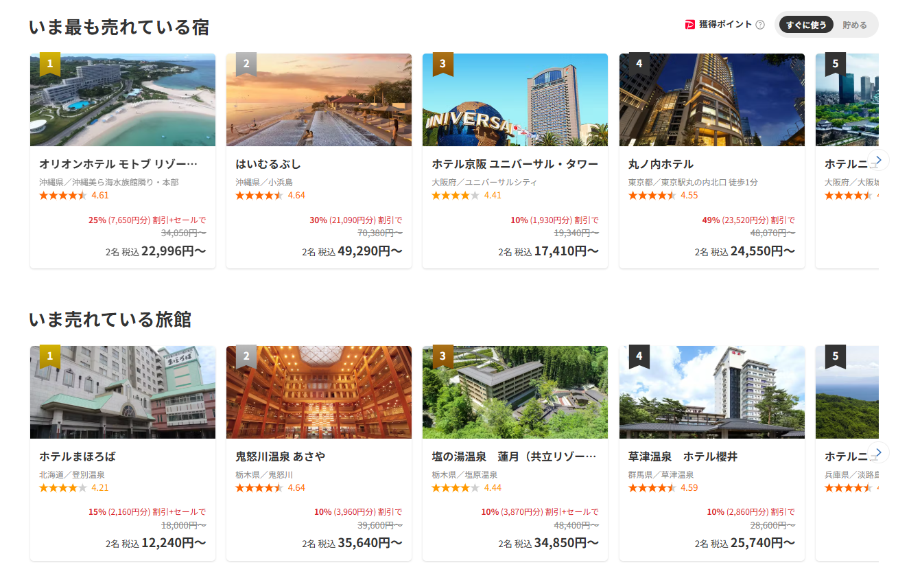 期間限定の割引クーポンやポイントアップキャンペーン、タイムセールなどが頻繁に開催されます。これらのキャンペーンを活用することで、通常よりもお得に旅行を予約できます。